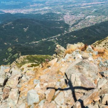 L’osservatorio astronomico, costruito per catturare le stesse costellazioni che i nostri nonni leggevano senza telescopi, oggi è un monolite silenzioso. La lunga sterrata è una via di meditazione, un modo per assorbire lentamente il paesaggio. Raggiunta Costa della Mula con la sua baita solitaria, si oltrepassa l’ultimo avamposto prima del tratto finale: 200 metri di pietraia dove ogni appiglio diventa un pensiero tradotto in movimento. Le tacche giallo-bianche e rosse sono promesse sussurrate, una sorta di “sassi di Pollicino” per chi teme di perdersi lungo l’ascesa.