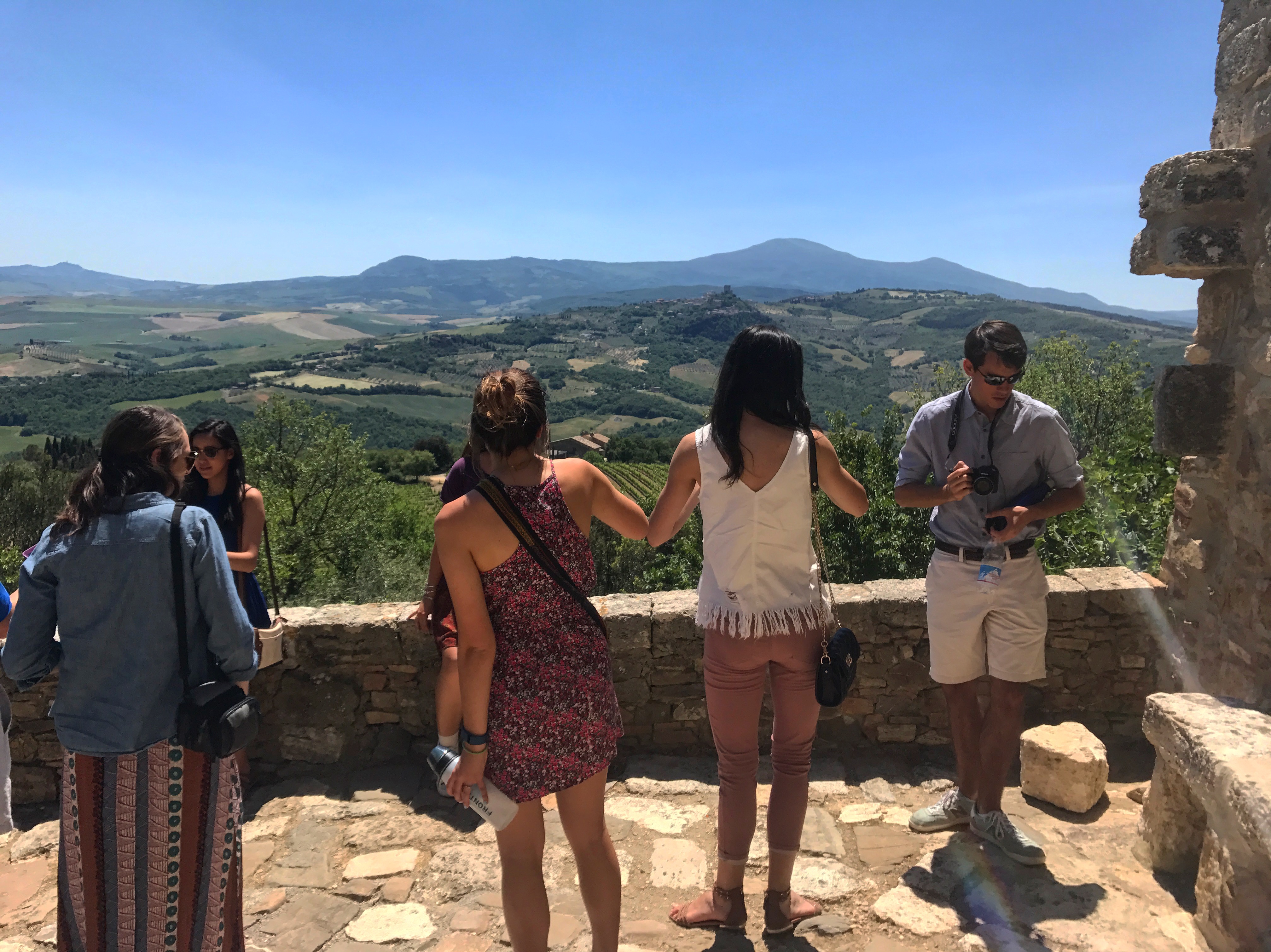 Lasciandoci la vasca termale alle spalle arriveremo alla terrazza iconica di tutta la Via Francigena, il castello di Vignoni Alto, per poi proseguire su una dorsale che domina tutta la valle spaziando dal Monte Amiata a Siena fino a discendere al fiume Orcia.