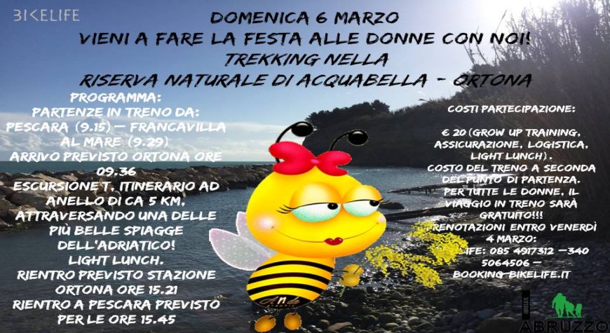 Siamo una compagnia di guide cicloturistiche che organizza escursioni e vacanze attive: bici (MTB o bici da strada), trekking, nordic walking, ciaspolate sono la nostra specialità ! I nostri uffici sono a Francavilla al Mare, a pochi km da Pescara e Chieti, ma siamo operativi in tutto l'Abruzzo... e non solo! In sella alla bicicletta o a piedi vi porteremo alla scoperta degli angoli più suggestivi e autentici della costa e della montagna, su percorsi adatti al vostro grado di preparazione, facendovi assaporare a pieno le sensazioni del viaggiare lento, a contatto con la natura, immersi nella cultura e nelle secolari tradizioni del luogo. Se siete alla ricerca di una giornata o di una vacanza su due ruote, in movimento, sportiva, ecologica, ecosostenibile non vi resta che scegliere tra le proposte.